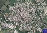 bastide et d'une vue de la place et de l'église données respectivement par Google Earth et Géoportail